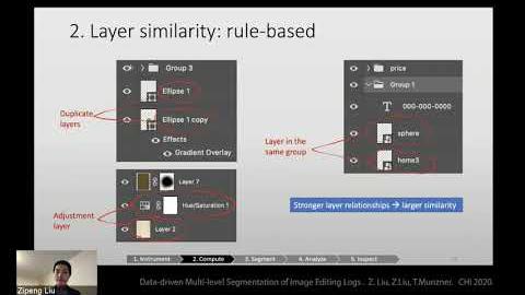 Automatic segmentation of logs for creativity tools such as image editing systems could improve their usability and learnability by supporting such interaction use cases as smart history navigation or recommending alternative design choices. We propose a multi-level segmentation model that works for many image editing tasks including poster creation, portrait retouching, and special effect creation. The lowest-level chunks of logged events are computed using a support vector machine model and higher-level chunks are built on top of these, at a level of granularity that can be customized for specific use cases. Our model takes into account features derived from four event attributes collected in realistically complex Photoshop sessions with expert users: command, timestamp, image content, and artwork layer. We present a detailed analysis of the relevance of each feature and evaluate the model using both quantitative performance metrics and qualitative analysis of sample sessions.