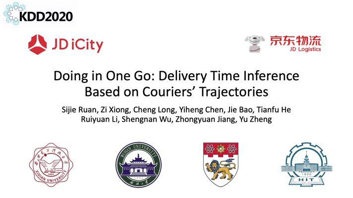 The rapid development of e-commerce requires efficient and reliable logistics services. Nowadays, couriers are still the main solution to address the "last mile" problem in logistics. They are usually required to record the accurate delivery time of each parcel manually, which provides vital information for applications like delivery insurances, delivery performance evaluations, and customer available time discovery. Couriers’ trajectories generated by their PDAs provide a chance to infer the delivery time automatically to ease the burdens on the couriers. However, directly using the nearest stay point to infer the delivery time is under satisfactory due to two challenges: 1) inaccurate delivery locations, and 2) various stay scenarios. To this end, we propose Delivery Time Inference (DTInf), to automatically infer the delivery time of waybills based on couriers’ trajectories. Our solution is composed of three steps: 1) Data Pre-processing, which detects stay points from trajectories, and separates stay points and waybills by delivery trips, 2) Delivery Location Correction, which infers true delivery locations of waybills by mining historical deliveries, and 3) Delivery Event-based Matching, which selects the best-matched stay point for waybills in the same delivery location to infer the delivery time. Extensive experiments and case studies based on large scale real-world waybill and trajectory data from JD Logistics confirm the effectiveness of our approach. Finally, we introduce a system based on DTInf, which is deployed and used internally in JD Logistics.