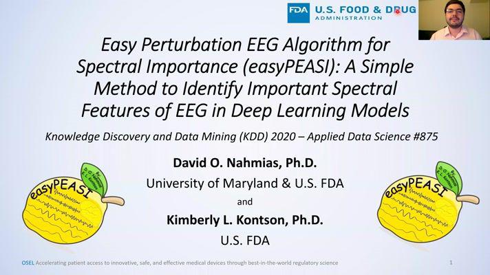 Efforts into understanding neurological differences between populations is an active area of research. Deep learning has recently shown promising results using EEG as input to distinguish recordings of subjects based on neurological activity. However, only about one quarter of these studies investigate the underlying neurophysiological implications. This work proposes and validates a method to investigate frequency bands important to EEG-driven deep learning models. Easy perturbation EEG algorithm for spectral importance (easyPEASI) is simpler than previous methods and requires only perturbations to input data. We validate easyPEASI on EEG pathology classification using the Temple University Health EEG Corpus. easyPEASI is further applied to characterize the effects of patients’ medications on brain rhythms. We investigate classifications of patients taking one of two anticonvulsant medications, Dilantin (phenytoin) and Keppra (levetiracetam), and subjects taking no medications. We find that for recordings of subjects with clinically-determined normal EEG that these medications effect the Theta and Alpha band most significantly. For recordings with clinically-determined abnormal EEG these medications affected the Delta, Theta, and Alpha bands most significantly. We also find the Beta band to be affected differently by the two medications. Results found here show promise for a method of obtaining explainable artificial intelligence and interpretable models from EEG-driven deep learning through a simpler more accessible method perturbing only input data. Overall, this work provides a fast, easy, and reproducible method to automatically determine salient spectral features of neural activity that have been learned by machine learning models, such as deep learning.