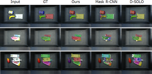 In this paper, we focus on instance segmentation of a top-view image for robot picking task. One difficulty in this setting is that objects are located in various orientations and highly overlapped, where a traditional box proposal approach such as Mask R-CNN does not work well because more than one objects often have very similar bounding-boxes. To address this issue, we adopt a recently developed point proposal approach. This approach firstly generates point proposals instead of box proposals, then an instance mask is predicted over an image for each proposal point. This procedure enables us to obtain pixel-precise masks even for objects sharing the same bounding-box. However, mask prediction over an image may produce a few false positive pixels apart from objects and these false positives are problematic for robot picking task. To suppress them, we introduce rectangular masks. A rectangular mask for each proposal point restricts the existence area of the corresponding object within the rectangle. The experimental result on WISDOM dataset shows that our method achieves superior performance to Mask R-CNN with the same backbone model and introduction of rectangular masks gives small improvement of mask AP and large improvement of box AP.