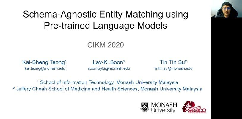Entity matching (EM) is the process of linking records from different data sources. While extensive research has been done in various aspects of EM, many of these studies generally assume EM tasks as schema-specific, which attempt to match record pairs at attributes level. Unfortunately, in the real-world, tables that undergo EM may not have an aligned schema, and often, the schema or metadata of the table and attributes are not known beforehand.In view of this challenge, this paper presents an effective approach for schema-agnostic EM, where having schema-aligned tables is not compulsory. The proposed method stemmed from the idea of treating tuples in tables for EM similar to sentence pair classification problem in natural language processing (NLP). A pre-trained language model, BERT is adopted by fine-tuning it using labeled dataset. The proposed method was experimented using benchmark datasets and compared against two state-of-the-art approaches,namely DeepMatcher and Magellan. The experimental results show that our proposed solution outperforms by an average of 9