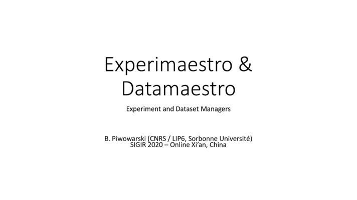 Abstract Ensuring reproducibility is key to all scientific domains. As Information Retrieval (IR) experiments are often composed of several steps that can be shared between tested models, and rely on various resources, it is difficult to keep track of all the experimental settings and to ensure experiments can be reproduced easily. In this demo paper, we present two managers, Experimaestro and Datamaestro, and their add-ons for IR, designed to help to define and run experimental plans.
