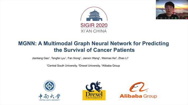 Predicting the survival of cancer patients holds significant meaning for public health, and has attracted increasing attention in medical information communities. In this study, we propose a novel framework for cancer survival prediction named Multimodal Graph Neural Network (MGNN), which explores the features of real-world multimodual data such as gene expression, copy number alteration and clinical data in a unified framework. In order to explore the inherent relation, we first construct the bipartite graphs between patients and multimodal data. Subsequently, graph neural network is adopted to obtain the embedding of each patient on different bipartite graphs. Finally, a multimodal fusion neural layer is designed to fuse the features from different modal data. The output of our method is the classification of short term survival or long term survival for each patient. Experimental results on one breast cancer dataset demonstrate that MGNN outperforms all baselines. Furthermore, we test the trained model on lung cancer dataset, and the experimental results verify the strong robust by comparing with state-of-the-art methods.
