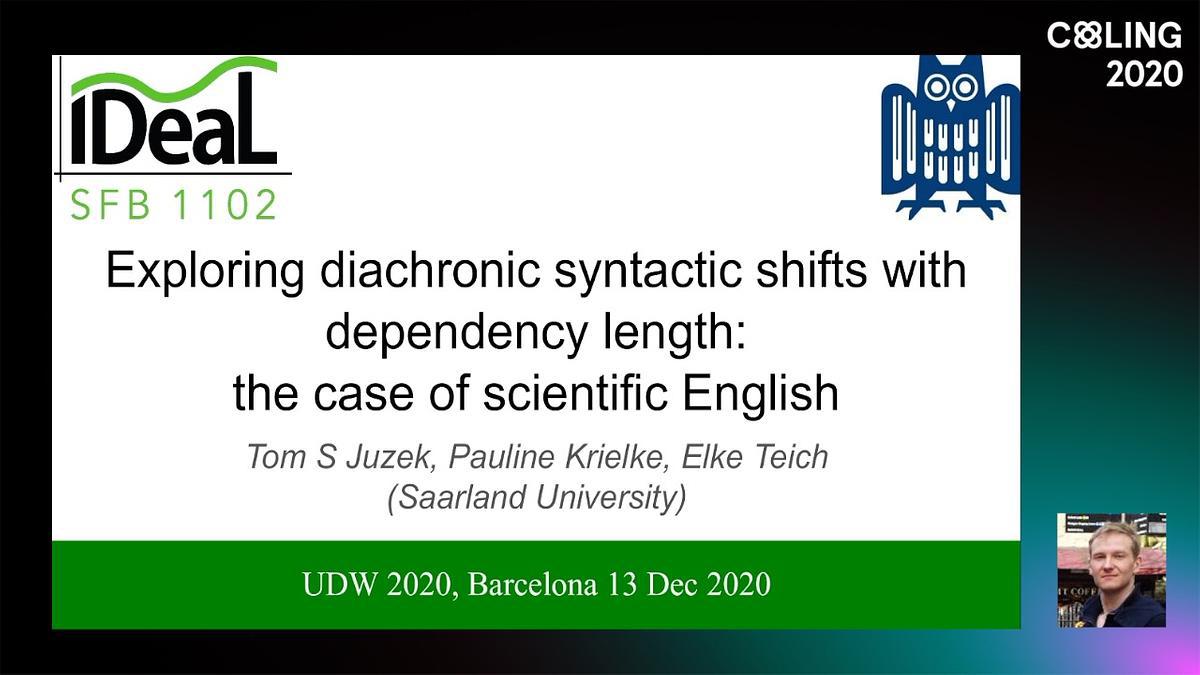 We report on an application of universal dependencies for the study of diachronic shifts in syntactic usage patterns. Our focus is on the evolution of Scientific English in the Late Modern English period (ca. 1700-1900). Our data set is the Royal Society Corpus (RSC), comprising the full set of publications of the Royal Society of London between 1665 and 1996. Our starting assumption is that over time, Scientific English develops specific syntactic choice preferences that increase efficiency in (expert-to-expert) communication. The specific hypothesis we pursue in this paper is that changing syntactic choice preferences lead to greater dependency locality/dependency length minimization, which is associated with positive effects for the efficiency of human as well as computational linguistic processing. As a basis for our measurements, we parsed the RSC using Stanford CoreNLP. Overall, we observe a decrease in dependency length, with long dependency structures becoming less frequent and short dependency structures becoming more frequent over time, notably pertaining to the nominal phrase, thus marking an overall push towards greater communicative efficiency.