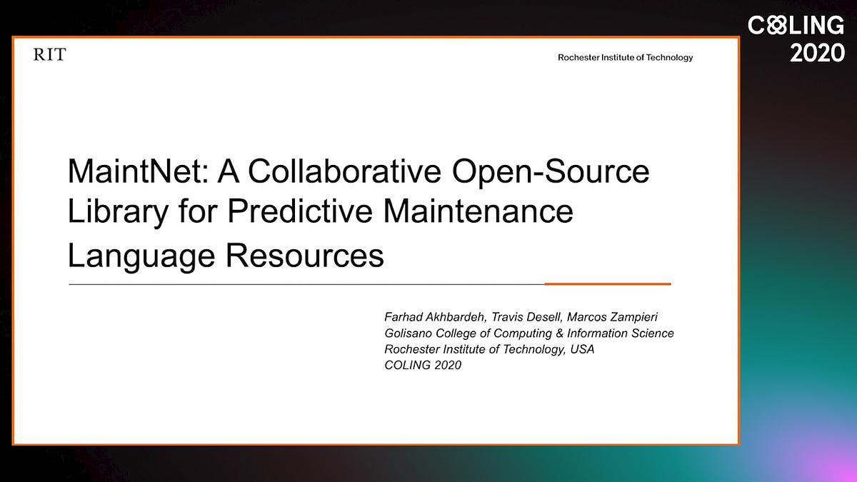 Maintenance record logbooks are an emerging text type in NLP. An important part of them typically consist of free text with many domain specific technical terms, abbreviations, and non-standard spelling and grammar. This poses difficulties for NLP pipelines trained on standard corpora. Analyzing and annotating such documents is of particular importance in the development of predictive maintenance systems, which aim to improve operational efficiency, reduce costs, prevent accidents, and save lives. In order to facilitate and encourage research in this area, we have developed MaintNet, a collaborative open-source library of technical and domain-specific language resources. MaintNet provides novel logbook data from the aviation, automotive, and facility maintenance domains along with tools to aid in their (pre-)processing and clustering. Furthermore, it provides a way to encourage discussion on and sharing of new datasets and tools for logbook data analysis.