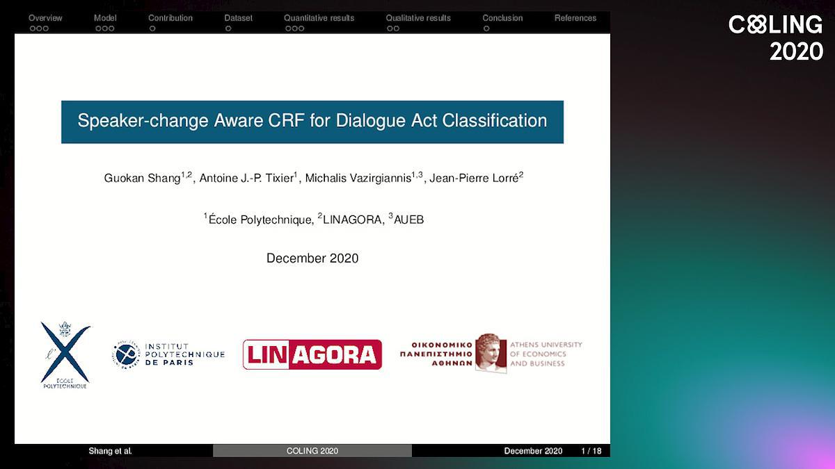 Recent work in Dialogue Act (DA) classification approaches the task as a sequence labeling problem, using neural network models coupled with a Conditional Random Field (CRF) as the last layer. CRF models the conditional probability of the target DA label sequence given the input utterance sequence. However, the task involves another important input sequence, that of speakers, which is ignored by previous work. To address this limitation, this paper proposes a simple modification of the CRF layer that takes speaker-change into account. Experiments on the SwDA corpus show that our modified CRF layer outperforms the original one, with very wide margins for some DA labels. Further, visualizations demonstrate that our CRF layer can learn meaningful, sophisticated transition patterns between DA label pairs conditioned on speaker-change in an end-to-end way. Code is publicly available.