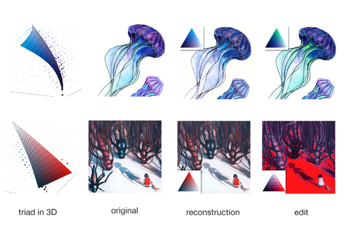 We present nonlinear color triads, an extension of color gradients able to approximate a variety of natural color distributions that have no standard interactive representation. We derive a method to fit this compact parametric representation to existing images and show its power for tasks such as image editing and compression. Our color triad formulation can also be included in standard deep learning architectures, facilitating further research.