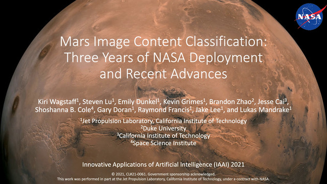 The NASA Planetary Data System hosts millions of images acquired from the planet Mars. To help users quickly find images of interest, we have developed and deployed content-based classification and search capabilities for Mars orbital and surface images. The deployed systems are publicly accessible using the PDS Image Atlas. We describe the process of training, evaluating, calibrating, and deploying updates to two CNN classifiers for images collected by Mars missions. We also report on three years of deployment including usage statistics, lessons learned, and plans for the future.