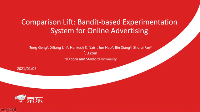 Comparison Lift is an experimentation-as-a-service (EaaS) application for testing online advertising audiences and creatives at JD.com. Unlike many other EaaS tools that focus primarily on fixed sample A/B testing, Comparison Lift deploys a custom bandit-based experimentation algorithm. The advantages of the bandit-based approach are two-fold. First, it aligns the randomization induced in the test with the advertiser’s goals from testing. Second, by adapting experimental design to information acquired during the test, it reduces substantially the cost of experimentation to the advertiser. Since launch in May 2019, Comparison Lift has been utilized in over 1,500 experiments. We estimate that utilization of the product has helped increase click-through rates of participating advertising campaigns by 46% on average. We estimate that the adaptive design in the product has generated 27% more clicks on average during testing compared to a fixed sample A/B design. Both suggest significant value generation and cost savings to advertisers from the product.