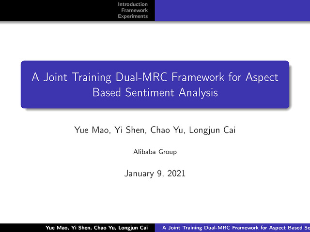 Aspect based sentiment analysis (ABSA) involves three fundamental subtasks: aspect term extraction, opinion term extraction, and aspect-level sentiment classification. Early works only focused on solving one of these subtasks individually. Some recent work focused on solving a combination of two subtasks, e.g., extracting aspect terms along with sentiment polarities or extracting the aspect and opinion terms pair-wisely. More recently, the triple extraction task has been proposed, i.e., extracting the (aspect term, opinion term, sentiment polarity) triples from a sentence. However, previous approaches fail to solve all subtasks in a unified end-to-end framework. In this paper, we propose a complete solution for ABSA. We construct two machine reading comprehension (MRC) problems, and solve all subtasks by joint training two BERT-MRC models with parameters sharing. We conduct experiments on these subtasks and results on several benchmark datasets demonstrate the effectiveness of our proposed framework, which significantly outperforms existing state-of-the-art methods.