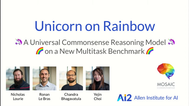 Commonsense AI has long been seen as a near impossible goal---until recently. Now, research interest has sharply increased with an influx of new benchmarks and models. We propose two new ways to evaluate commonsense models, emphasizing their generality on new tasks and building on diverse, recently introduced benchmarks. First, we propose a new multitask benchmark, Rainbow, to promote research on commonsense models that generalize well over multiple tasks and datasets. Second, we propose a novel evaluation, the cost equivalent curve, that sheds new insight on how the choice of source datasets, pretrained language models, and transfer learning methods impacts performance and data efficiency. We perform extensive experiments---over 200 experiments encompassing 4800 models---and report multiple valuable and sometimes surprising findings, e.g., that transfer almost always leads to better or equivalent performance if following a particular recipe, that QA-based commonsense datasets transfer well with each other, while commonsense knowledge graphs do not, and that perhaps counter-intuitively, larger models benefit more from transfer than smaller ones. Last but not least, we introduce a new universal commonsense reasoning model, UNICORN, that establishes new state-of-the-art performance across 8 popular commonsense benchmarks, aNLI (87.3%), CosmosQA (91.8%), HellaSWAG (93.9%), PIQA (90.1%), SocialIQa (83.2%), WinoGrande (86.6%), CycIC (94.0%) and CommonsenseQA (79.3%).