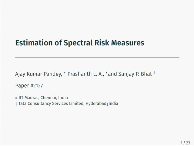 We consider the problem of estimating a spectral risk measure (SRM) from i.i.d. samples, and propose a novel method that is based on numerical integration. We show that our SRM estimate concentrates exponentially, when the underlying distribution has bounded support. Further, we also consider the case when the underlying distribution satisfies an exponential moment bound, which includes sub-Gaussian and subexponential distributions. For these distributions, we derive a concentration bound for our estimation scheme. We validate the theoretical findings on a synthetic setup, and in a vehicular traffic routing application.