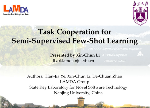 Training a model with limited data is an essential task for machine learning and visual recognition. Few-shot learning approaches meta-learn a task-level inductive bias from SEEN class few-shot tasks, and the meta-model is expected to facilitate the few-shot learning with UNSEEN classes. Inspired by the idea that unlabeled data can be utilized to smooth the model space in traditional semi-supervised learning, we propose TAsk COoperation (TACO) which takes advantage of unsupervised tasks to smooth the meta-model space. Specifically, we couple the labeled support set in a few-shot task with easily-collected unlabeled instances, prediction agreement on which encodes the relationship between tasks. The learned smooth meta-model promotes the generalization ability on supervised UNSEEN few-shot tasks. The state-of-the-art few-shot classification results on MiniImageNet and TieredImageNet verify the superiority of TACO to leverage unlabeled data and task relationship in meta-learning.