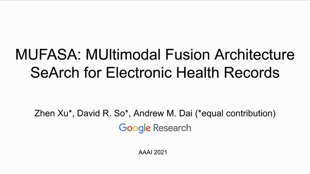 One important challenge of applying deep learning to electronic health records (EHR) is the complexity of their multimodal structure. EHR usually contains a mixture of structured (codes) and unstructured (free-text) data with sparse and irregular longitudinal features -- all of which doctors utilize when making decisions. In the deep learning regime, determining how different modality representations should be fused together is a difficult problem, which is often addressed by handcrafted modeling and intuition. In this work, we extend state-of-the-art neural architecture search (NAS) methods and propose MUltimodal Fusion Architecture SeArch (MUFASA) to simultaneously search across multimodal fusion strategies and modality-specific architectures for the first time. We demonstrate empirically that our MUFASA method outperforms established unimodal NAS on public EHR data with comparable computation costs. In addition, MUFASA produces architectures that outperform Transformer and Evolved Transformer. Compared with these baselines on CCS diagnosis code prediction, our discovered models improve top-5 recall from 0.88 to 0.91 and demonstrate the ability to generalize to other EHR tasks. Studying our top architecture in depth, we provide empirical evidence that MUFASA's improvements are derived from its ability to both customize modeling for each modality and find effective fusion strategies.