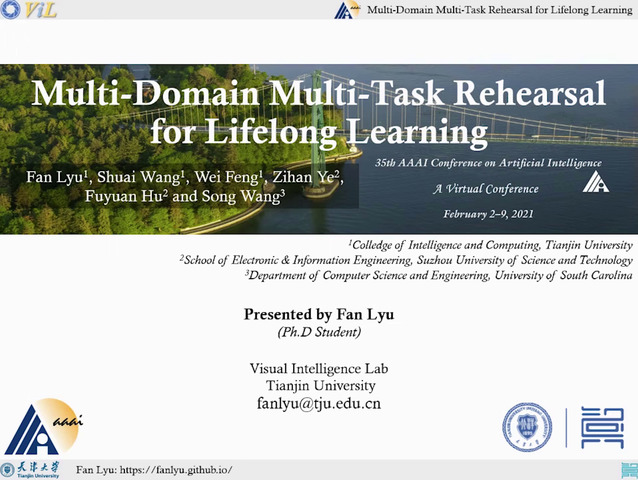 Rehearsal, seeking to remind the model by storing old knowledge in lifelong learning, is one of the most effective ways to mitigate catastrophic forgetting, i.e., biased forgetting of previous knowledge when moving to new tasks. However, the old tasks of the most previous rehearsal-based methods suffer from the unpredictable domain shift when training the new task. This is because these methods always ignore two significant factors. First, the Data Imbalance between the new task and old tasks that makes the domain of old tasks prone to shift. Second, the Task Isolation among all tasks will make the domain shift toward unpredictable directions; To address the unpredictable domain shift, in this paper, we propose Multi-Domain Multi-Task (MDMT) rehearsal to train the old tasks and new task parallelly and equally to break the isolation among tasks. Specifically, a two-level angular margin loss is proposed to encourage the intra-class/task compactness and inter-class/task discrepancy, which keeps the model from domain chaos. In addition, to further address domain shift of the old tasks, we propose an optional episodic distillation loss on the memory to anchor the knowledge for each old task. Experiments on benchmark datasets validate the proposed approach can effectively mitigate the unpredictable domain shift.