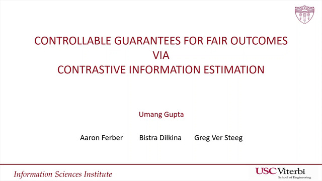 Controlling bias in training datasets is vital for ensuring equal treatment, or parity, between different groups in downstream applications. A naive solution is to transform the data so that it is statistically independent of group membership, but this may throw away too much information when a reasonable compromise between fairness and accuracy is desired. Another common approach is to limit the ability of a particular adversary who seeks to maximize parity. Unfortunately, representations produced by adversarial approaches may still retain biases as their efficacy is tied to the complexity of the adversary used during training. To this end, we theoretically establish that by limiting the mutual information between representations and protected attributes, we can assuredly control the parity of any downstream classifier. We demonstrate an effective method for controlling parity through mutual information based on contrastive information estimators and show that they outperform approaches that rely on variational bounds based on complex generative models. We test our approach on UCI Adult and Heritage Health datasets and demonstrate that our approach provides more informative representations across a range of desired parity thresholds while providing strong theoretical guarantees on the parity of any downstream algorithm.