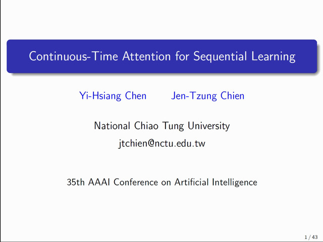 Attention mechanism is crucial for sequential learning where a wide range of applications have been successfully developed. This mechanism is basically trained to spotlight on the region of interest in hidden states of sequence data. Most of the attention methods compute the attention score through relating between a query and a sequence where the discrete-time state trajectory is represented. Such a discrete-time attention could not directly attend the continuous-time trajectory which is represented via neural differential equation (NDE) combined with recurrent neural network. This paper presents a new continuous-time attention method for sequential learning which is tightly integrated with NDE to construct an attentive continuous-time state machine. The continuous-time attention is performed at all times over the hidden states for different kinds of irregular time signals. The missing information in sequence data due to sampling loss, especially in presence of long sequence, can be seamlessly compensated and attended in learning representation. The experiments on irregular sequence samples from human activities, dialogue sentences and medical features show the merits of the proposed continuous-time attention for activity recognition, sentiment classification and mortality prediction, respectively.