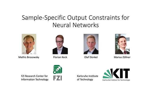 It is common practice to constrain the output space of a neural network with the final layer to a problem-specific value range. However, for many tasks it is desired to restrict the output space for each input independently to a different subdomain with a non-trivial geometry, e.g. in safety-critical applications, to exclude hazardous outputs sample-wise. We propose ConstraintNet—a scalable neural network architecture which constrains the output space in each forward pass independently. Contrary to prior approaches, which perform a projection in the final layer, ConstraintNet applies an input-dependent parametrization of the constrained output space. Thereby, the complete interior of the constrained region is covered and computational costs are reduced significantly. For constraints in form of convex polytopes, we leverage the vertex representation to specify the parametrization. The second modification consists of adding an auxiliary input in form of a tensor description of the constraint to enable the handling of multiple constraints for the same sample. Finally, ConstraintNet is end-to-end trainable with almost no overhead in the forward and backward pass. We demonstrate ConstraintNet on two regression tasks: First, we modify a CNN and construct several constraints for facial landmark detection tasks. Second, we demonstrate the application to a follow object controller for vehicles and accomplish safe reinforcement learning in this case. In both experiments, ConstraintNet improves performance and we conclude that our approach is promising for applying neural networks in safety-critical environments.