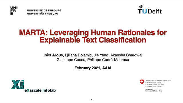 Explainability is a key requirement for text classification in many application domains ranging from sentiment analysis to medical diagnosis or legal reviews. Existing methods often rely on "attention" mechanisms for explaining classification results by estimating the relative importance of input units. However, recent studies have shown that such mechanisms tend to mis-identify irrelevant input units in their explanation. In this work, we propose a hybrid human-AI approach that incorporates human rationales into attention-based text classification models to improve the explainability of classification results. Specifically, we ask workers to provide rationales for their annotation by selecting relevant pieces of text. We introduce MARTA, a Bayesian framework that jointly learns an attention-based model and the reliability of workers while injecting human rationales into model training. We derive a principled optimization algorithm based on variational inference with efficient updating rules for learning MARTA parameters. Extensive validation on real-world datasets shows that our framework significantly improves the state of the art both in terms of classification explainability and accuracy.