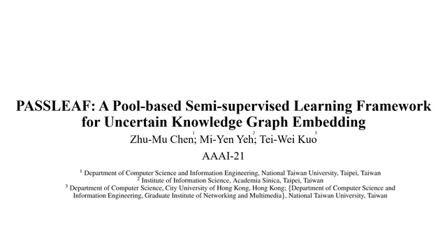 In this paper, we study the problem of embedding uncertain knowledge graphs, where each relation between entities is associated with a confidence score. Observing the existing embedding methods may discard the uncertainty information, only incorporate a specific type of score function, or cause many false-negative samples in the training, we propose the PASSLEAF framework to solve the above issues. PASSLEAF consists of two parts, one is a model that can incorporate different types of scoring functions to predict the relation confidence scores and the other is the semi-supervised learning model by exploiting both positive and negative samples associated with the estimated confidence scores. Furthermore, PASSLEAF leverages a sample pool as a relay of generated samples to further augment the semi-supervised learning. Experiment results show that our proposed framework can learn better embedding in terms of having higher accuracy in both the confidence score prediction and tail entity prediction.