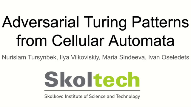 State-of-the-art deep classifiers are intriguingly vulnerable to universal adversarial perturbations: single disturbances of small magnitude that lead to misclassification of most inputs. This phenomena may potentially result in a serious security problem. Despite the extensive research in this area, there is a lack of theoretical understanding of the structure of these perturbations. In image domain, there is a certain visual similarity between patterns, that represent these perturbations, and classical Turing patterns, which appear as a solution of non-linear partial differential equations and are underlying concept of many processes in nature. In this paper, we provide a theoretical bridge between these two different theories, by mapping a simplified algorithm for crafting universal perturbations to (inhomogeneous) cellular automata, the latter is known to generate Turing patterns. Furthermore, we propose to use Turing patterns, generated by cellular automata, as universal perturbations, and experimentally show that they significantly degrade the performance of deep learning models. We found this method to be a fast and efficient way to create a data-agnostic quasi-imperceptible perturbation in the black-box scenario. The source code is available at https://github.com/NurislamT/advTuring.