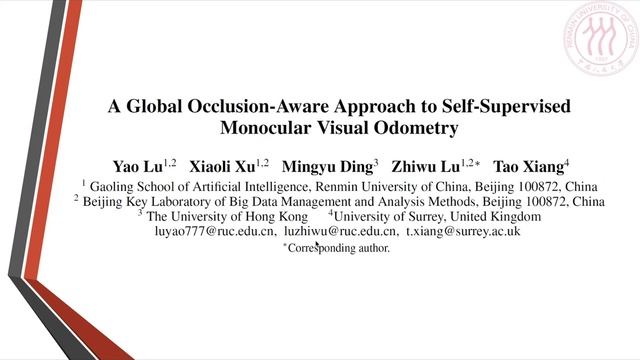 Self-Supervised monocular visual odometry (VO) is often cast into a view synthesis problem based on depth and camera pose estimation. One of the key challenges is to accurately and robustly estimate depth with occlusions and moving objects in the scene. Existing methods simply detect and mask out regions of occlusions locally by several convolutional layers, and then perform only partial view synthesis in the rest of the image. However, occlusion and moving object detection is an unsolved problem itself which requires global layout information. Inaccurate detection inevitably results in incorrect depth as well as pose estimation. In this work, instead of locally detecting and masking out occlusions and moving objects, we propose to alleviate their negative effects on monocular VO implicitly but more effectively from two global perspectives. First, a multi-scale non-local attention module, consisting of both intra-stage augmented attention and cascaded across-stage attention, is proposed for robust depth estimation given occlusions, alleviating the impacts of occlusions via global attention modeling. Second, adversarial learning is introduced in view synthesis for monocular VO. Unlike existing methods that use pixel-level losses on the quality of synthesized views, we enforce the synthetic view to be indistinguishable from the real one at the scene-level. Such a global constraint again helps cope with occluded and moving regions. Extensive experiments on the KITTI dataset show that our approach achieves new state-of-the-art in both pose estimation and depth recovery.