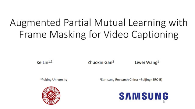 Recent video captioning work improves greatly due to the invention of various elaborate model architectures. If multiple captioning models are combined into a unified framework not only by simple more ensemble, and each model can benefit from each other, the final captioning might be boosted further. Jointly training of multiple model have not been explored in previous works. In this paper, we propose a novel Augmented Partial Mutual Learning (APML) training method where multiple decoders are trained jointly with mimicry losses between different decoders and different input variations. Another problem of training captioning model is the "one-to-many" mapping problem which means that one identical video input is mapped to multiple caption annotations. To address this problem, we propose an annotation-wise frame masking approach to convert the "one-to-many" mapping to "one-to-one" mapping. The experiments performed on MSR-VTT and MSVD datasets demonstrate our proposed algorithm achieves the state-of-the-art performance.