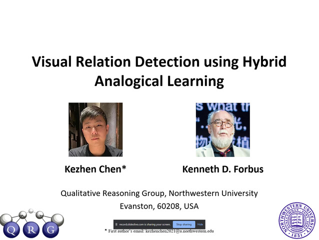 Visual Relation Detection is currently one of the most popular problems for visual understanding. Many deep-learning models are designed for relation detection on images and have achieved impressive results. However, deep-learning models have several serious problems, including poor training-efficiency and lack of understandability. Psychologists have ample evidence that analogy is central in human learning and reasoning, including visual reasoning. This paper introduces a new hybrid system for visual relation detection combining deep-learning models and analogical generalization. Object bounding boxes and masks are detected using deep-learning models and analogical generalization over qualitative representations is used for visual relation detection between object pairs. Experiments on the Visual Relation Detection dataset indicates that our hybrid system gets comparable results on the task and is more training-efficient and explainable than pure deep-learning models.