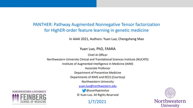 Genetic pathways usually encode molecular mechanisms that can inform targeted interventions. It is often challenging for existing machine learning approaches to jointly model genetic pathways (higher-order features) and variants (atomic features), and present to clinicians interpretable models. In order to build more accurate and better interpretable machine learning models for genetic medicine, we introduce Pathway Augmented Nonnegative Tensor factorization for HighER-order feature learning (PANTHER). PANTHER selects informative genetic pathways that directly encode molecular mechanisms. We apply genetically motivated constrained tensor factorization to group pathways in a way that reflects molecular mechanism interactions. We then train a softmax classifier for disease types using the identified pathway groups. We evaluated PANTHER against multiple state-of-the-art constrained tensor/matrix factorization models, as well as group guided and Bayesian hierarchical models. PANTHER outperforms all state-of-the-art comparison models significantly (p<0.05). Our experiments on large scale Next Generation Sequencing (NGS) and whole-genome genotyping datasets also demonstrated wide applicability of PANTHER. We performed feature analysis in predicting disease types, which suggested insights and benefits of the identified pathway groups.