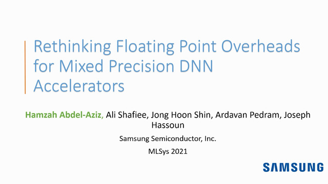 Abstract: Mixed precision DNN accelerators become more ubiquitous especially when both efficient training and inference are required. In this paper, we propose a mixed-precision convolution unit architecture which supports different integer and floating point~(FP) precisions. The proposed architecture is based on low-bit inner product units and realizes higher precision based on temporal decomposition. We illustrate how to integrate FP computations on integer-based architecture and evaluate overheads incurred by FP arithmetic support. We argue that alignment and addition overhead for FP inner product can be significant since the maximum exponent difference could be up to 58 bits, which results into a large alignment logic. To address this issue, we illustrate empirically that at least 8 bits of alignment logic are required to maintain inference accuracy. We present novel optimizations based on the above observations to reduce the FP arithmetic hardware overheads. Our empirical results, based on simulation and hardware implementation, show significant reduction in FP16 overhead. Over typical mixed precision implementation, the proposed architecture achieves area improvements of up to 25\% in TFLOPS/$mm^2$ and up to 46\% in TOPS/$mm^2$ with power efficiency improvements of up to 40\% in TFLOPS/W and up to 63\% in TOPS/W.