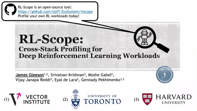 Abstract: Deep reinforcement learning (RL) has made groundbreaking advancements in robotics, data center management and other applications. Unfortunately, system-level bottlenecks in RL workloads are poorly understood; we observe fundamental structural differences in RL workloads that make them inherently less GPU-bound than supervised learning (SL). To explain where training time is spent in RL workloads, we propose RL-Scope, a cross-stack profiler that scopes low-level CPU/GPU resource usage to high-level algorithmic operations, and provides accurate insights by correcting for profiling overhead. Using RL-Scope, we survey RL workloads across its major dimensions including ML backend, RL algorithm, and simulator. For ML backends, we explain a 2.3× difference in runtime between equivalent PyTorch and TensorFlow algorithm implementations, and identify a bottleneck rooted in overly abstracted algorithm implementations. For RL algorithms and simulators, we show that on-policy algorithms are at least 3.5× more simulation-bound than off-policy algorithms. Finally, we profile a scale-up workload and demonstrate that GPU utilization metrics reported by commonly used tools dramatically inflate GPU usage, whereas RL-Scope reports true GPU-bound time. RL-Scope is an open-source tool available at https://github.com/UofT-EcoSystem/rlscope.