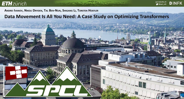 Abstract: Transformers are one of the most important machine learning workloads today. Training one is a very compute-intensive task, often taking days or weeks, and significant attention has been given to optimizing transformers. Despite this, existing implementations do not efficiently utilize GPUs. We find that data movement is the key bottleneck when training. Due to Amdahl's Law and massive improvements in compute performance, training has now become memory-bound. Further, existing frameworks use suboptimal data layouts. Using these insights, we present a recipe for globally optimizing data movement in transformers. We reduce data movement by up to 22.91% and overall achieve a 1.30x performance improvement over state-of-the-art frameworks when training a BERT encoder layer and 1.19x for the entire BERT. Our approach is applicable more broadly to optimizing deep neural networks, and offers insight into how to tackle emerging performance bottlenecks.