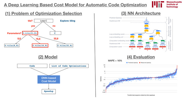Enabling compilers to automatically optimize code has been a longstanding goal for the compiler community. Efficiently solving this problem requires using precise cost models. These models predict whether applying a sequence of code transformations reduces the execution time of the program. Building an analytical cost model to do so is hard in modern x86 architectures due to the complexity of the microarchitecture. In this paper, we present a novel deep learning based cost model for automatic code optimization. This model was integrated in a search method and implemented in the Tiramisu compiler to select the best code transformations. The input of the proposed model is a set of simple features representing the unoptimized code and a sequence of code transformations. The model predicts the speedup expected when the code transformations are applied. Unlike previous models, the proposed one works on full programs and does not rely on any heavy feature engineering. The proposed model has only 16% of mean absolute percentage error in predicting speedups on full programs. The proposed model enables Tiramisu to automatically find code transformations that match or are better than state-of-the-art compilers without requiring the same level of heavy feature engineering required by those compilers