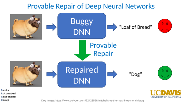 Deep Neural Networks (DNNs) have grown in popularity over the past decade and are now being used in safety-critical domains such as aircraft collision avoidance. This has motivated a large number of techniques for finding unsafe behavior in DNNs. In contrast, this paper tackles the problem of correcting a DNN once unsafe behavior is found. We introduce the provable repair problem, which is the problem of repairing a network N to construct a new network N′ that satisfies a given specification. If the safety specification is over a finite set of points, our Provable Point Repair algorithm can find a provably minimal repair satisfying the specification, regardless of the activation functions used. For safety specifications addressing convex polytopes containing infinitely many points, our Provable Polytope Repair algorithm can find a provably minimal repair satisfying the specification for DNNs using piecewise-linear activation functions. The key insight behind both of these algorithms is the introduction of a Decoupled DNN architecture, which allows us to reduce provable repair to a linear programming problem. Our experimental results demonstrate the efficiency and effectiveness of our Provable Repair algorithms on a variety of challenging tasks.