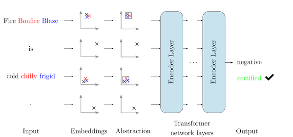 We present DeepT, a novel method for certifying Transformer networks based on abstract interpretation. The key idea behind DeepT is our new Multi-norm Zonotope abstract domain, an extension of the classical Zonotope designed to handle ℓ1 and ℓ2-norm bound perturbations. We introduce all Multi-norm Zonotope abstract transformers necessary to handle these complex networks, including the challenging softmax function and dot product. Our evaluation shows that DeepT can certify average robustness radii that are 28× larger than the state-of-the-art, while scaling favorably. Further, for the first time, we certify Transformers against synonym attacks on long sequences of words, where each word can be replaced by any synonym. DeepT achieves a high certification success rate on sequences of words where enumeration-based verification would take 2 to 3 orders of magnitude more time.