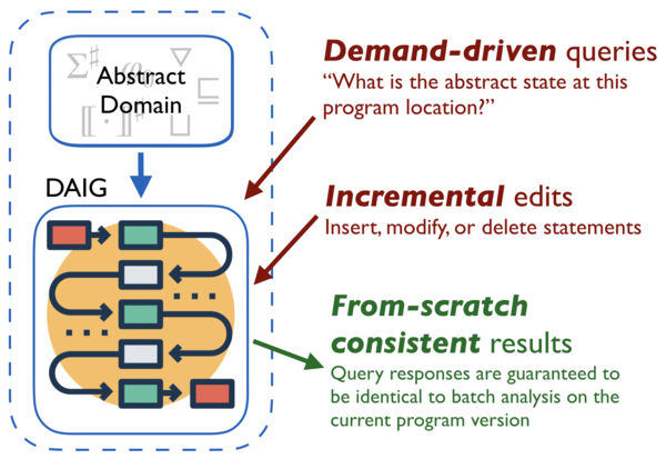 We consider the problem of making expressive static analyzers interactive. Formal static analysis is seeing increasingly widespread adoption as a tool for verification and bug-finding, but even with powerful cloud infrastructure it can take minutes or hours to get batch analysis results after a code change. While existing techniques offer some demand-driven or incremental aspects for certain classes of analysis, the fundamental challenge we tackle is doing both for arbitrary abstract interpreters. Our technique, demanded abstract interpretation, lifts program syntax and analysis state to a dynamically evolving graph structure, in which program edits, client-issued queries, and evaluation of abstract semantics are all treated uniformly. The key difficulty addressed by our approach is the application of general incremental computation techniques to the complex, cyclic dependency structure induced by abstract interpretation of loops with widening operators. We prove that desirable abstract interpretation meta-properties, including soundness and termination, are preserved in our approach, and that demanded analysis results are equal to those computed by a batch abstract interpretation. Experimental results suggest promise for a prototype demanded abstract interpretation framework: by combining incremental and demand-driven techniques, our framework consistently delivers analysis results at interactive speeds, answering 95% of queries within 1.2 seconds.
